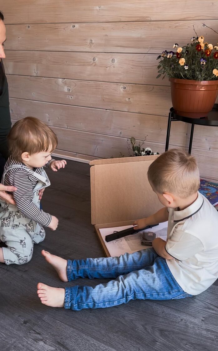 - Kruopščiai padenk mažas pėdutes dažų pagalvėle. Dažai yra saugūs mažyliams (be rūgščių ir netoksiški), todėl tepk drąsiai, storesniu sluoksniu.